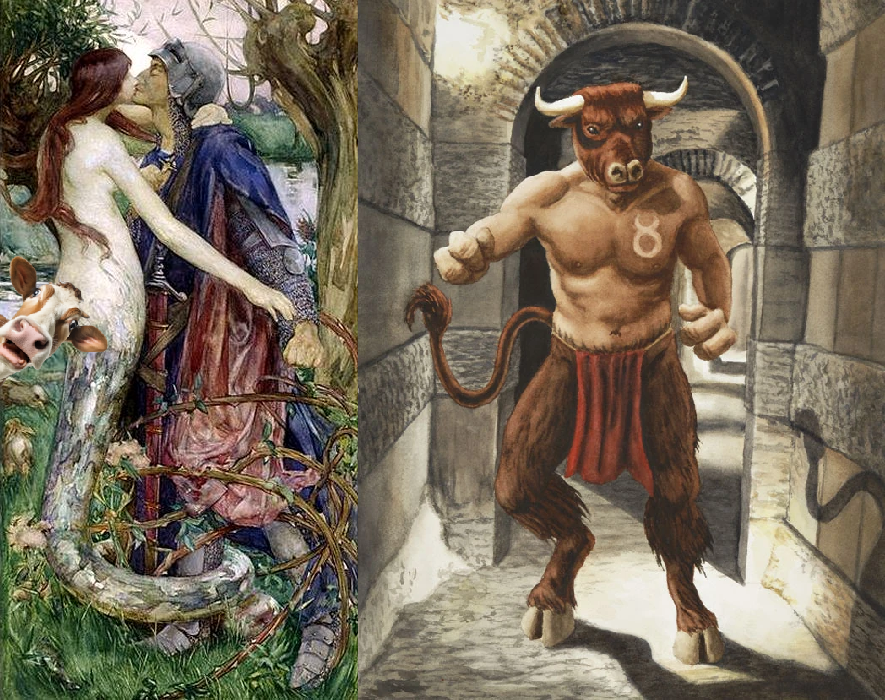 What history failed to document was that out of revenge, Minos hooked the Minotaur up with Poseidon’s daughter, Lamia, who took the form of a shark, at which point they conceived Shark Cow together. Having been conceived after the purging of Lamia’s offspring, he remains one of her only surviving heirs.